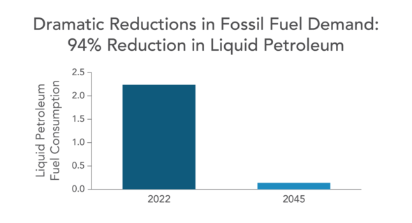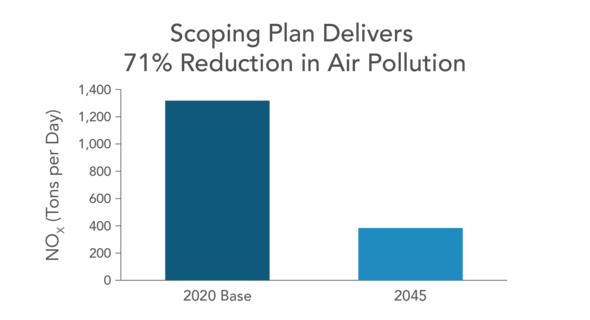 If successful, the plan would reduce total fossil fuel usage in the state by 86% and a reduction in petroleum liquids by 94%. In addition to reductions of GHGs, the proposal would also reduce total air pollutants by 71%.